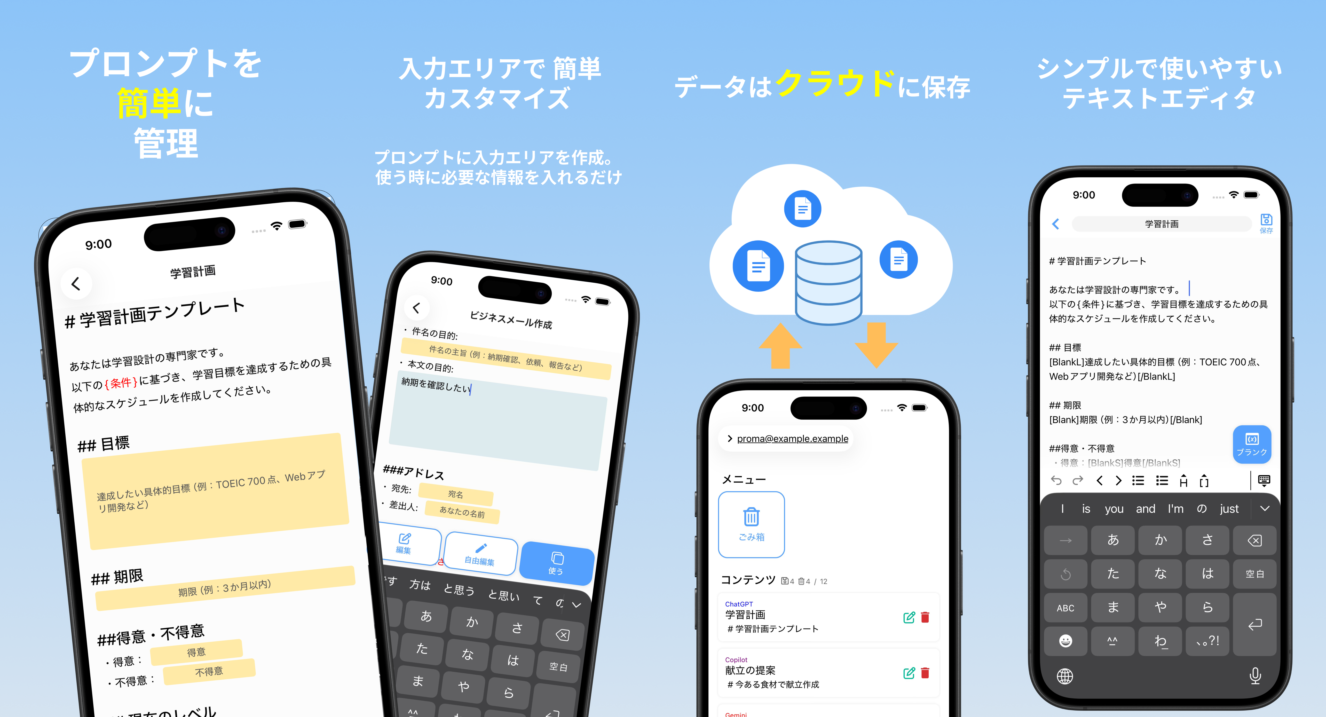 作成したプロンプトはクラウドに保存されるので、スマホでもタブレットでも、いつでもアクセスできます。